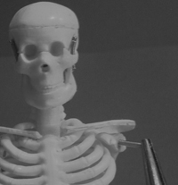 Re-attach the arm with a pipe cleaner, string or rubber band, tying it through space between the scapula and the clavicle, and through the hole in the head of the humerus. Be sure that the arm is reattached with the palm facing forward, and tie it loosely enough that it has good mobility. Clip off any excess. You can now practice joint motions (see Activity Page).