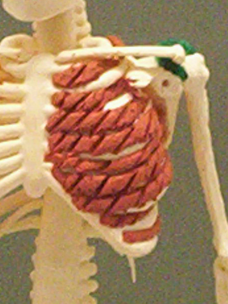 Action: pulls ribs up, elevating ribcage and enlarging chest cavity, causing inspiration