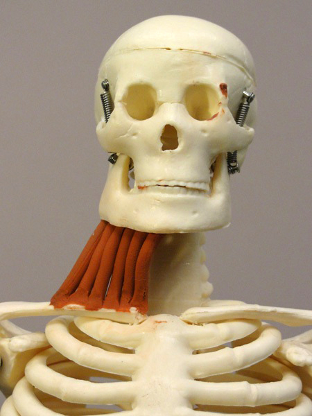 Action: pulls lower lip down (as in frowning), depresses mandible (opening mouth as when chewing or surprised), and tenses skin of the neck (as when gritting teeth)