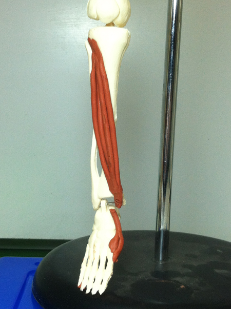 Insertion: medial cuneiform, under metatarsal 1 (wraps around to bottom of foot)