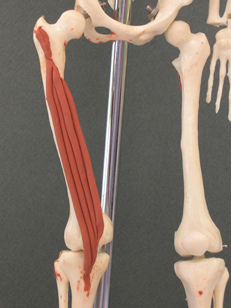 Origin: anterior shaft of femur (UNDER rectus femoris). Build this before rectus femoris!